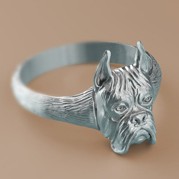 Boxer Breed Cropped Ears Jewelry Cuddle Wrap Ring