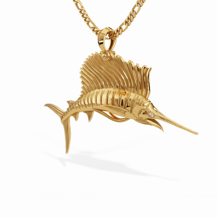Crafted with Unmatched Precision: Our Sailfish Pendant boasts an exceptional level of detail, ensuring that every facet of this magnificent fish is faithfully represented. Whether you're an ardent angler, ocean enthusiast, or connoisseur of marine beauty, you'll be entranced by the artistry that brings this masterpiece to life.