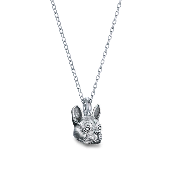 This adorable little French Bulldog Breed Puppy Face Charm is available in 14k White Gold, 14k Yellow Gold, Sterling Silver. Made in the USA. The Sterling Silver charms have a lightly hand burnished oxidized finish which really sets off his cute features. The 14k White Gold and 14k Yellow Gold charms are polished to a high shine. The French Bulldog Breed's face measure approx. 10mm wide. This little guy has excellent detail. He is waiting on you to give him a loving home. Charm comes with an 18 inch sterling silver chain.