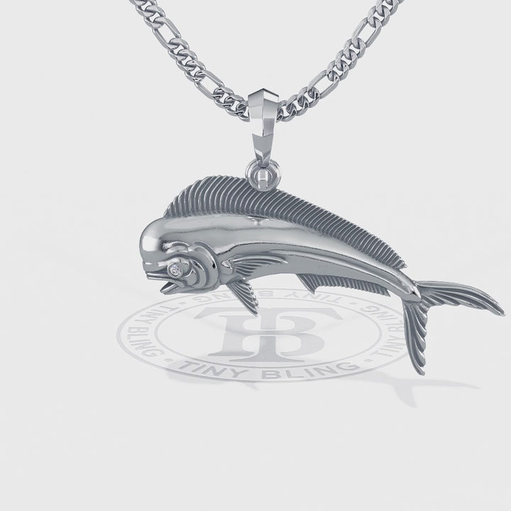 Sterling Silver Mahi Mahi Dolphinfish Pendant with Genuine Diamond Eyes designed by TinyBling